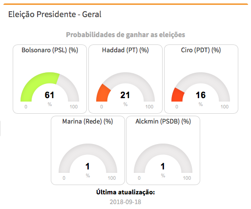 As últimas pesquisas aumentaram a possibilidade de vitória de Jair Bolsonaro para 61%, segundo o Polling Data, que faz a média ponderada de todos os levantamentos.