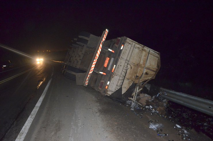 De acordo com o condutor da carreta, ele seguia carregado com refrigerante e água mineral da empresa Dydyo de Porto Velho com destino a Ji-Paraná e ao fazer a curva, a carreta pendeu para a direita e tombou em cima do guarde reio, com o movimento, o cavalinho se desprendeu evitando seu tombamento.