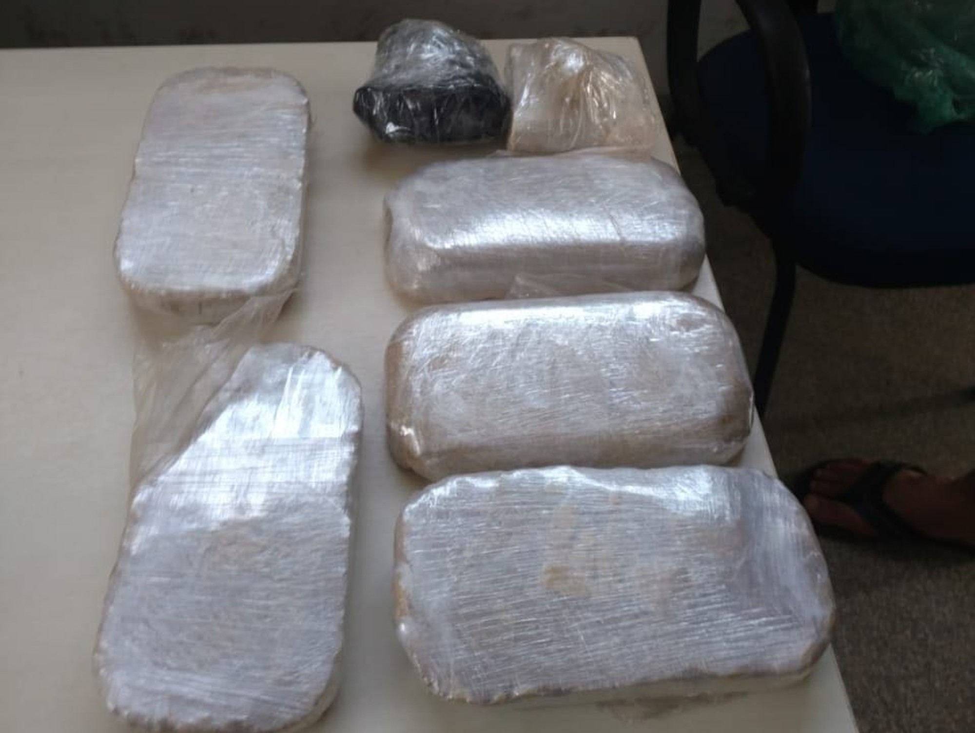 A droga estava na bagagem do rapaz, que estava acompanhado de sua namorada, os policiais encontraram sete tabletes de entorpecente, totalizando 5,95 kg de pasta base de cocaína, envoltos em fita adesiva.