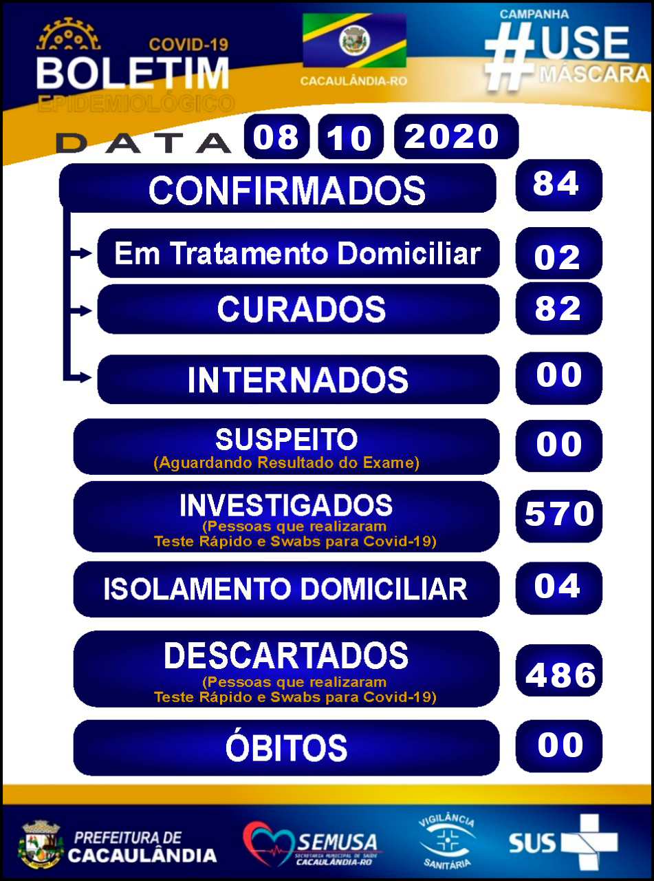 Nesta quinta-feira (8) foram consolidados os seguintes resultados para Covid-19 em Rondônia: